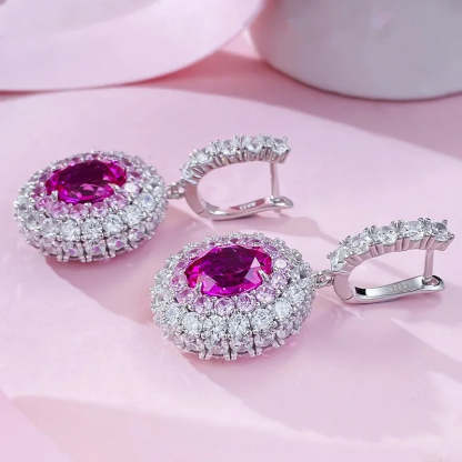 Pink Trendy Oval Cut Moissanite Diamonds Luxurious 18k White Gold Plated Drop Earrings | Mix Mix Style