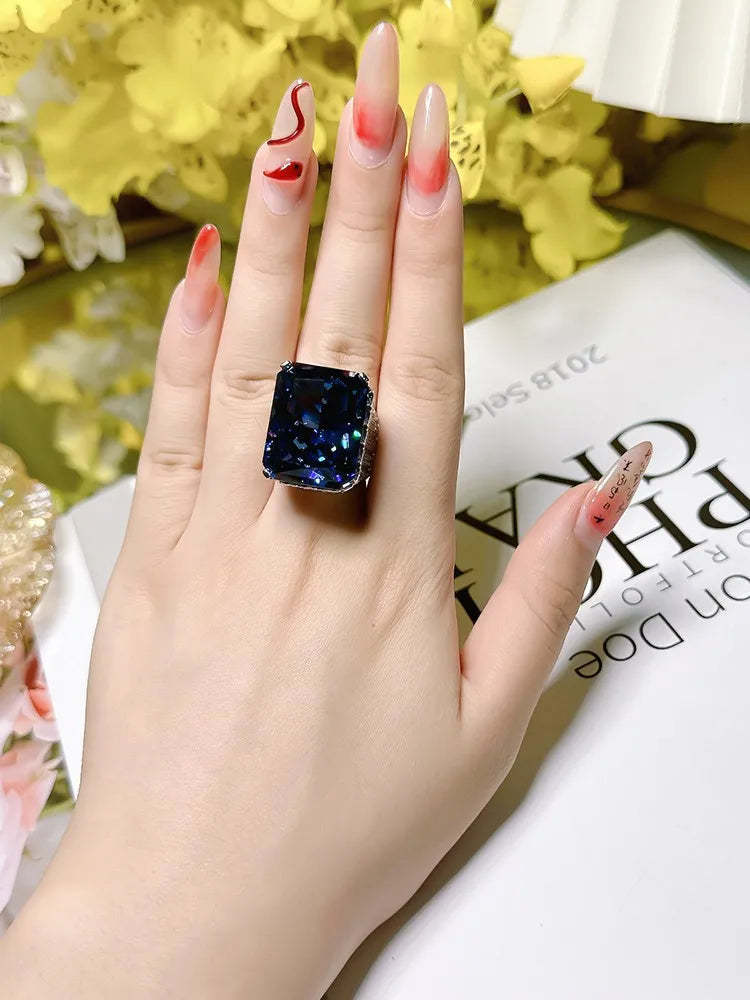 Solitarie Blue - Yellow Dazzling Timeless Radiant Cut Moissanite Diamond 18k White Gold Plated Luxurious Engagement Ring | Mix Mix Style