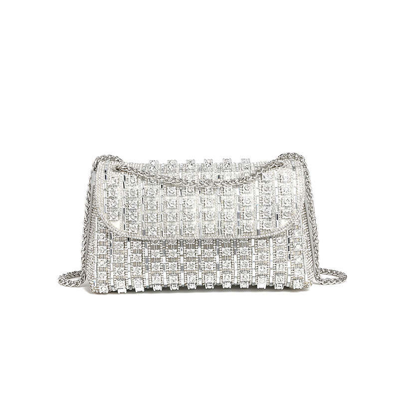silver - gold colorful square full diamond studded handbag evening summer small chain bag | Mix Mix Style