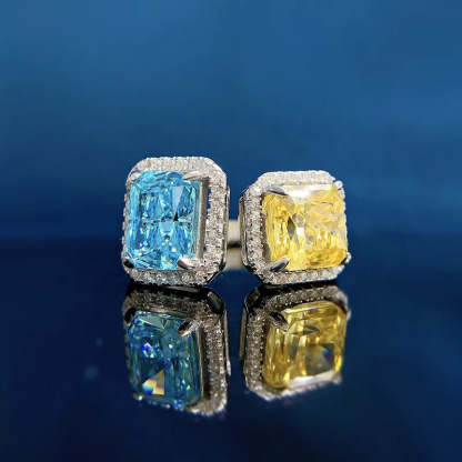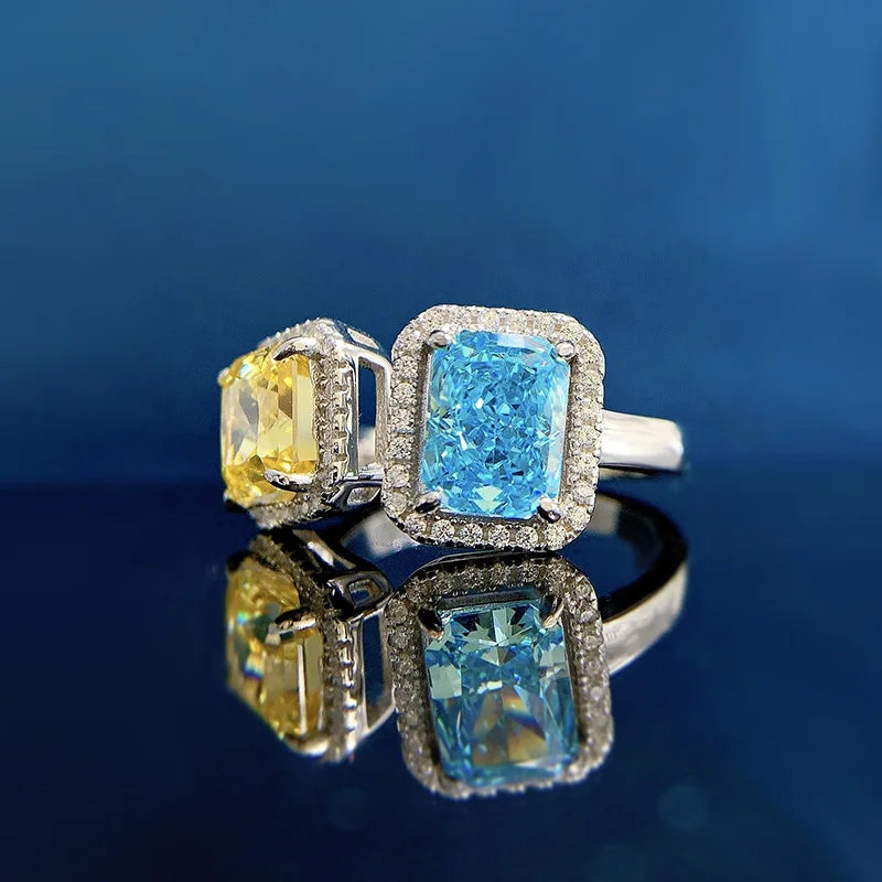 Open Blue & Yellow Timeless Double Radiant Cut Lab Drown Diamonds 18k White Gold Plated Luxurious Engagement Adjustable Ring | Mix Mix Style